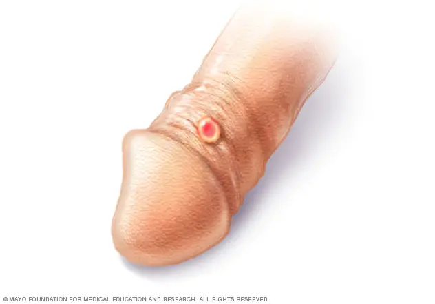 주로 성기 주변에 통증이 없는 단단한 구진이 생기고 궤양이 4-6주 지속되었다가 없어진다.