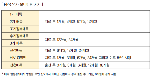 VDRL이나 RPR 수치에 따라서 판단한다.