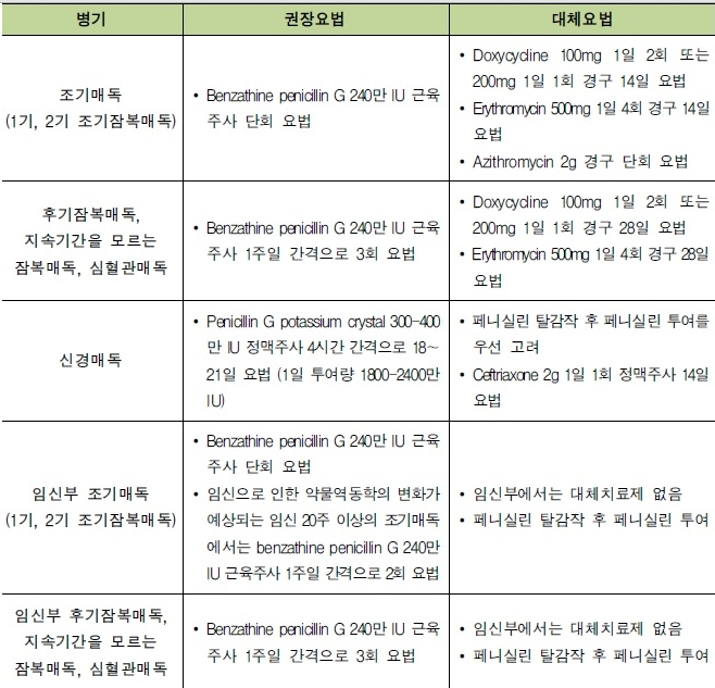 매독의 단계에 따라서 Penicillin 적정 용량 근육주사를 한다.